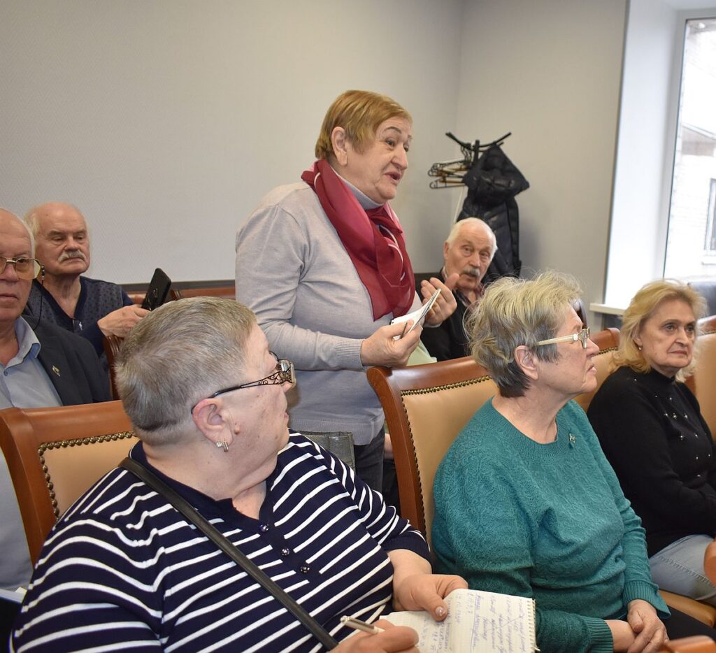 Одних интересовал переезд первичных организаций в связи с реновацией, которая проходит в районах, других — процедура поздравления юбиляров. На эти вопросы подробно отвела Светлана Ивановна Кузьмина.