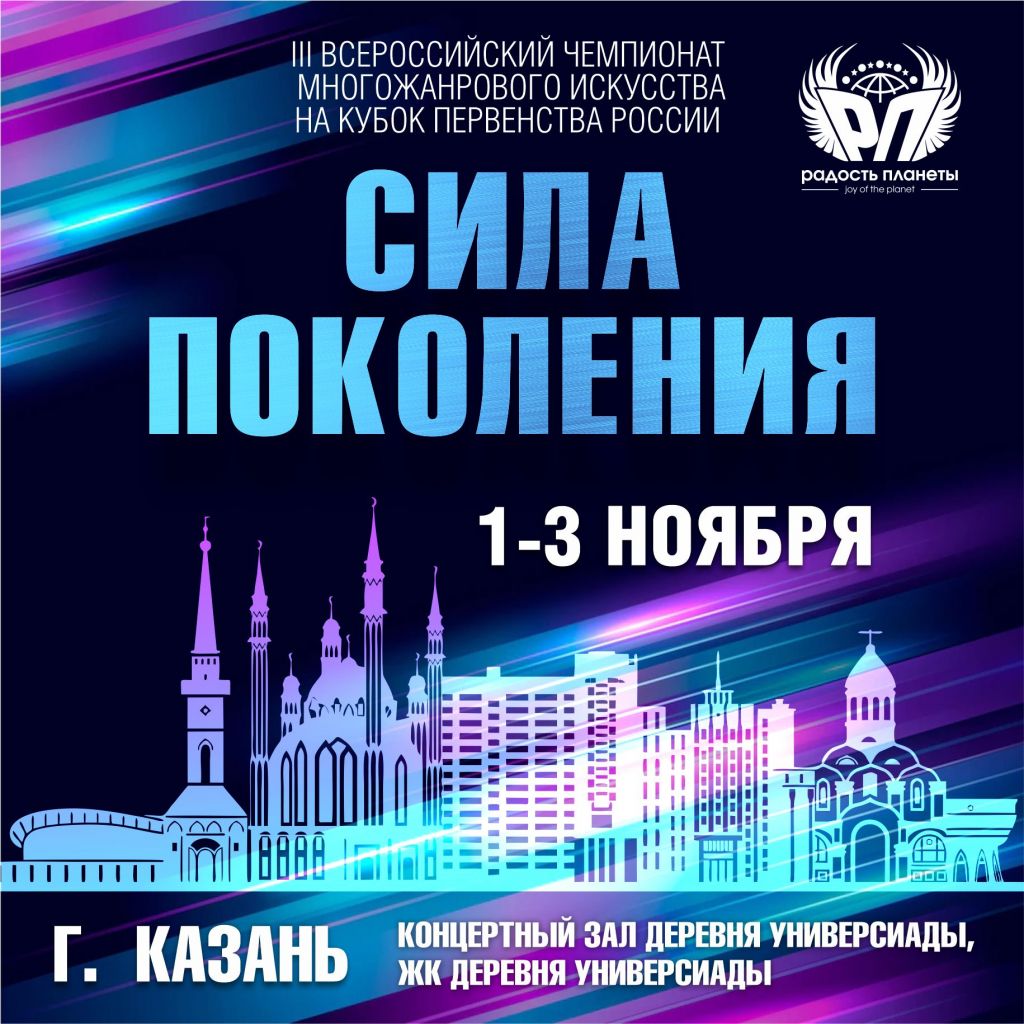 А в Казани именно в эти дни проходил III Всероссийский чемпионат многожанрового искусства на кубок первенства Поволжья «Сила поколения». В нем участвовали 27 танцевальных коллективов из разных регионов России: Башкортостана, Удмуртии, Татарстана, а также из Донецка, Москвы, Санкт-Петербурга, Новосибирской, Архангельской, Самврской, Брянской и Российской областей.